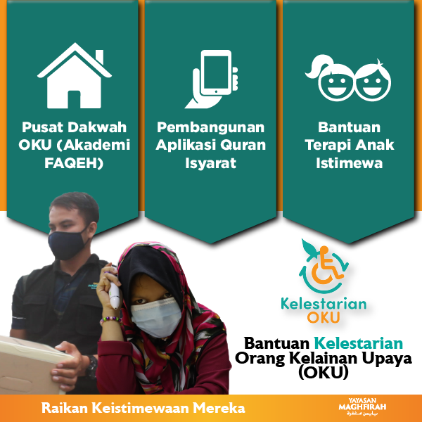 Yayasan Maghfirah mengambil inisiatif dengan melaksanakan Kempen Tabung Kelestarian OKU untuk menjaga kebajikan anak-anak OKU yang terdiri daripada mereka yang mengalami masalah penglihatan, pendengaran dan masalah pembelajaran seluruh Malaysia.